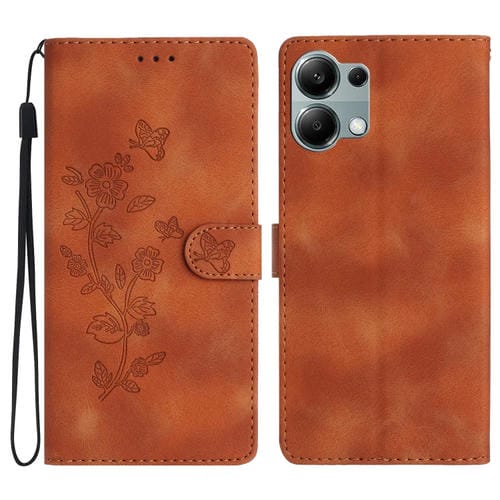 Funda de Cuero con Estampado de Flores y Mariposas para Redmi Note 13 Pro 4G (Marrón)