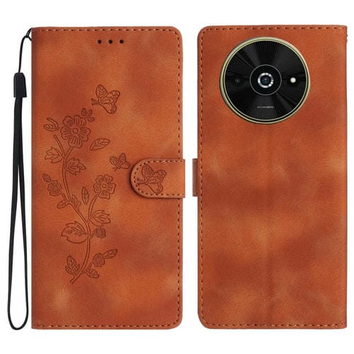 Funda de Cuero con Estampado de Flores y Mariposas para Xiaomi Poco C61 (Marrón)