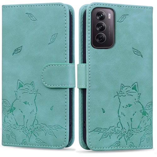 Funda de Cuero con Estampado de Gato Lindo para Oppo Reno12 5G Global (Verde)