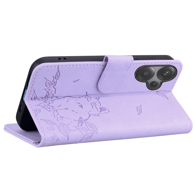 Funda de Cuero con Estampado de Gato para Redmi 13 4G (Morado)