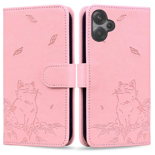 Funda de Cuero con Estampado de Gato para Redmi 13 4G (Rosa)