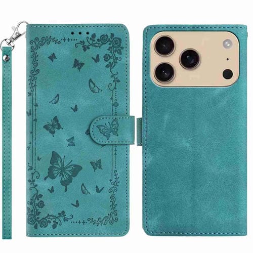 Funda de cuero con estampado de mariposas Secret Garden para iPhone 17 Pro Max (verde)
