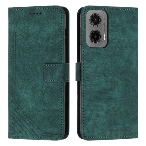 Funda de Cuero para Motorola Moto G35 con Estampado de Rayas y Tacto Sedoso (Verde)