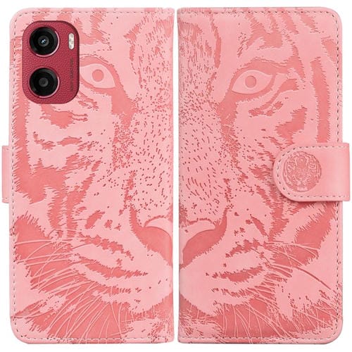 Funda de Cuero con Estampado de Tigre para Motorola Moto G05/E15 (Rosa)
