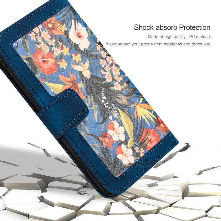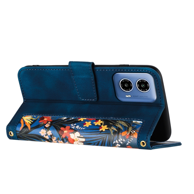 Funda de Cuero con Estampado Floral para Motorola Moto G 5G (2024) con Cordón (Azul Oscuro)