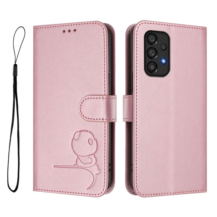 Funda de cuero con estampado RFID y cordón para Samsung Galaxy A33 5G (rosa)