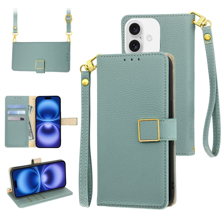 Funda de Cuero con Hebilla Cuadrada y Textura de Lichi para iPhone 16 (Azul)