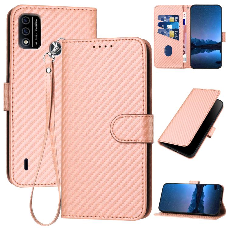 Funda de Cuero con Hebilla de Fibra de Carbono para Teléfono Itel A48 Yx0070 con Cordón (Rosa)