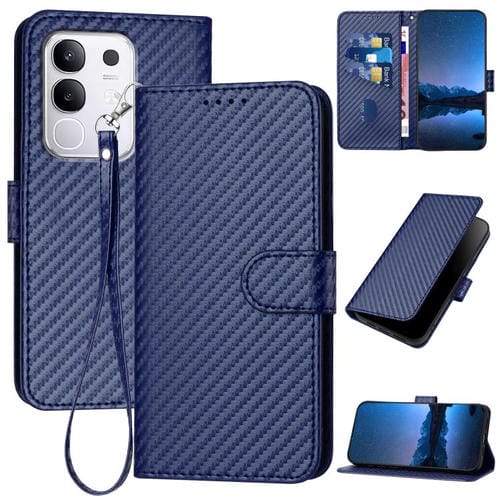 Funda de Cuero con Hebilla de Fibra de Carbono y Cordón para Vivo Y29 4G Yx0070 (Azul Real)