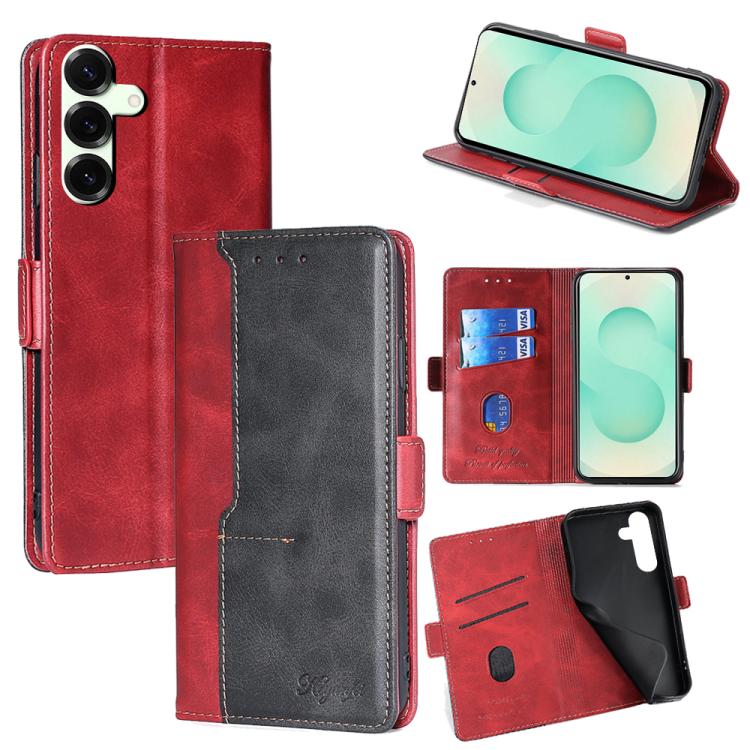 Funda de cuero con hebilla lateral en color de contraste para Samsung Galaxy S25+ 5G (rojo y negro)