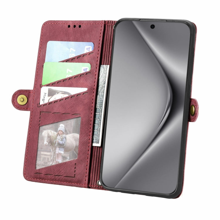 Funda de Cuero con Hebilla Lateral y Cierre Geométrico para Huawei Pura 70 Pro+ (Rojo)