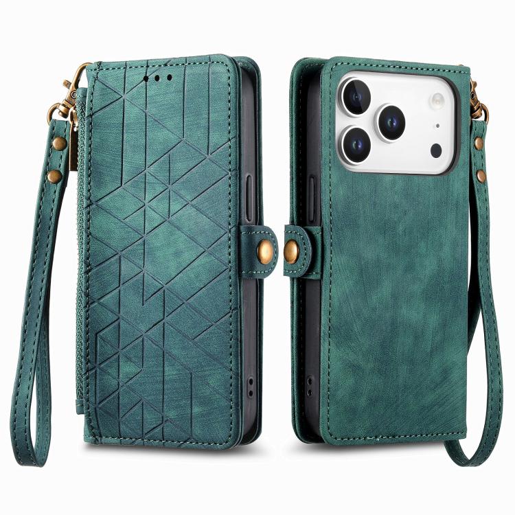 Funda de cuero con hebilla lateral y cremallera geométrica para iPhone 17 Pro Max (verde)