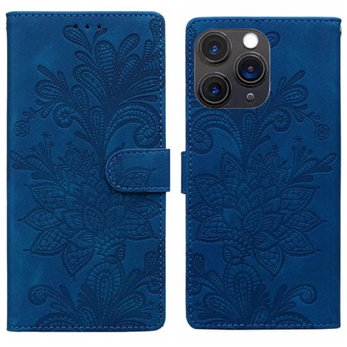 Funda de Cuero con Hebilla Magnética y Diseño Floral En Relieve para iPhone 11 Pro Max (Azul)