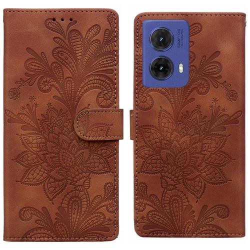 Funda de Cuero con Hebilla Magnética y Diseño Floral para Motorola Moto G85 (Marrón)