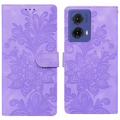 Funda de Cuero Motorola Moto G85 con Hebilla Magnética y Diseño Floral (Morado)