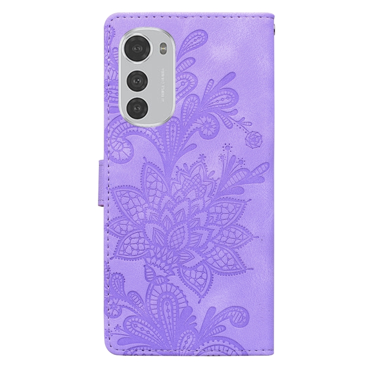 Funda de Cuero con Hebilla Magnética y Encaje Floral para Motorola Moto E32 4G/E32S (Morado)