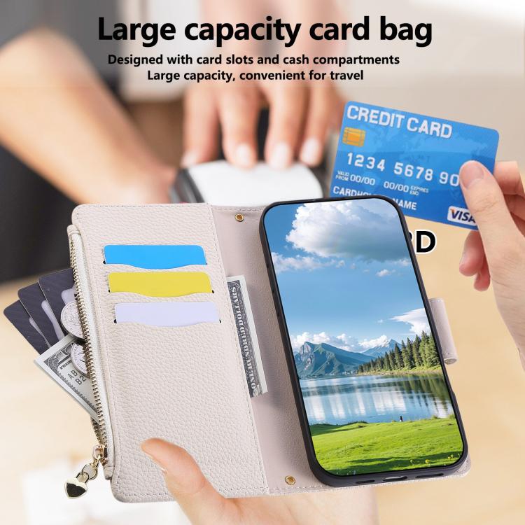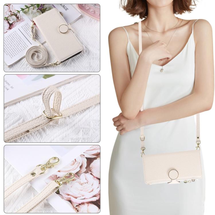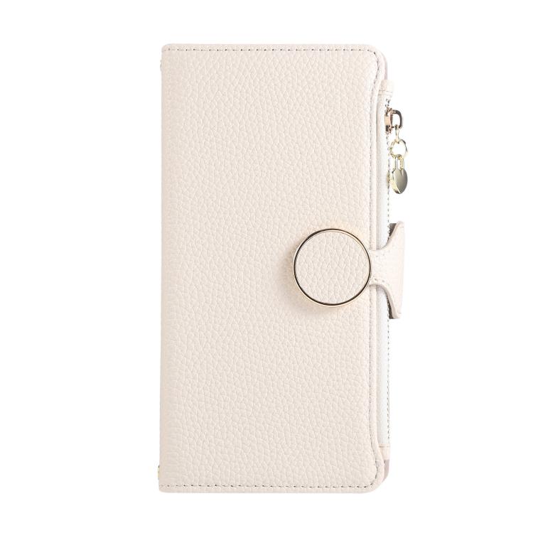 Funda de cuero con hebilla redonda y cremallera para Redmi K80/Poco F7 Pro, con correa cruzada (blanca)