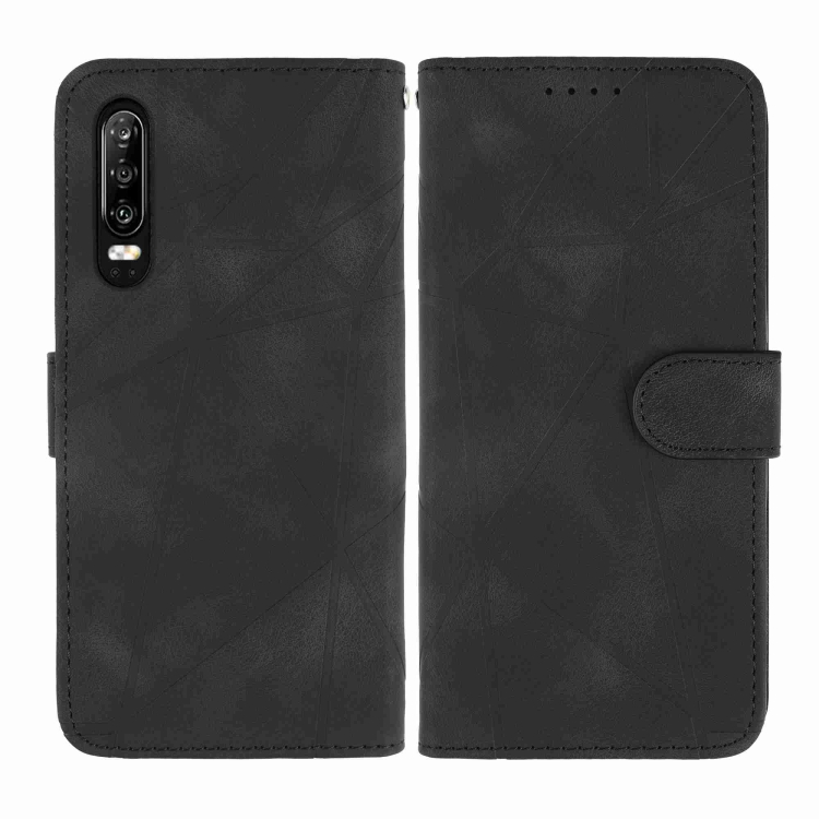 - 1x Funda de Cuero para Huawei P30 con Líneas Geométricas y Tacto de Piel (Negra)