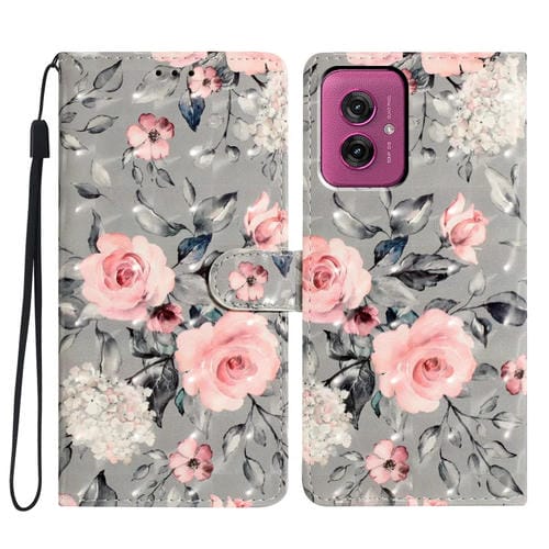 Funda de Cuero con Patrón 3D para Motorola Moto G55 (Flor de Base Gris)
