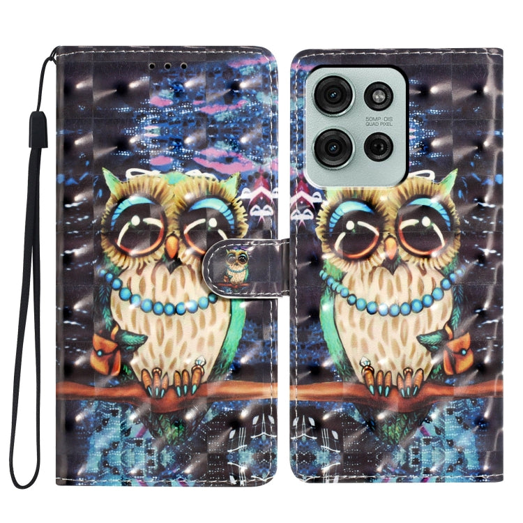 Funda de Cuero con Patrón 3D para Motorola Moto G75 5G (Búho de Ojos Grandes)