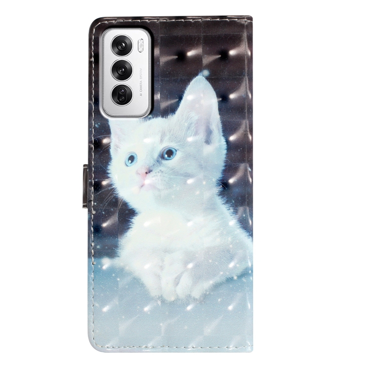 Funda de Cuero con Patrón 3D para Teléfono Oppo Reno12 Global (Gato Blanco)