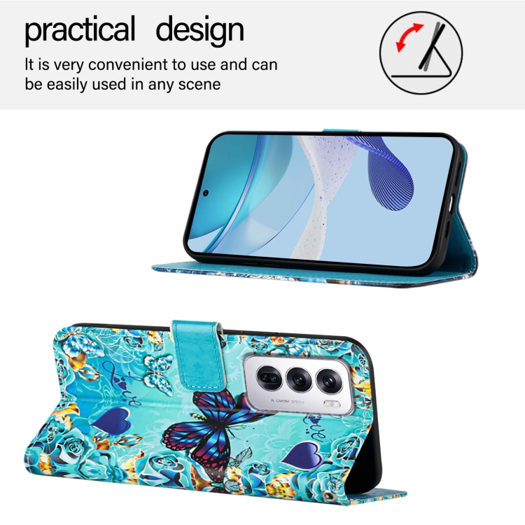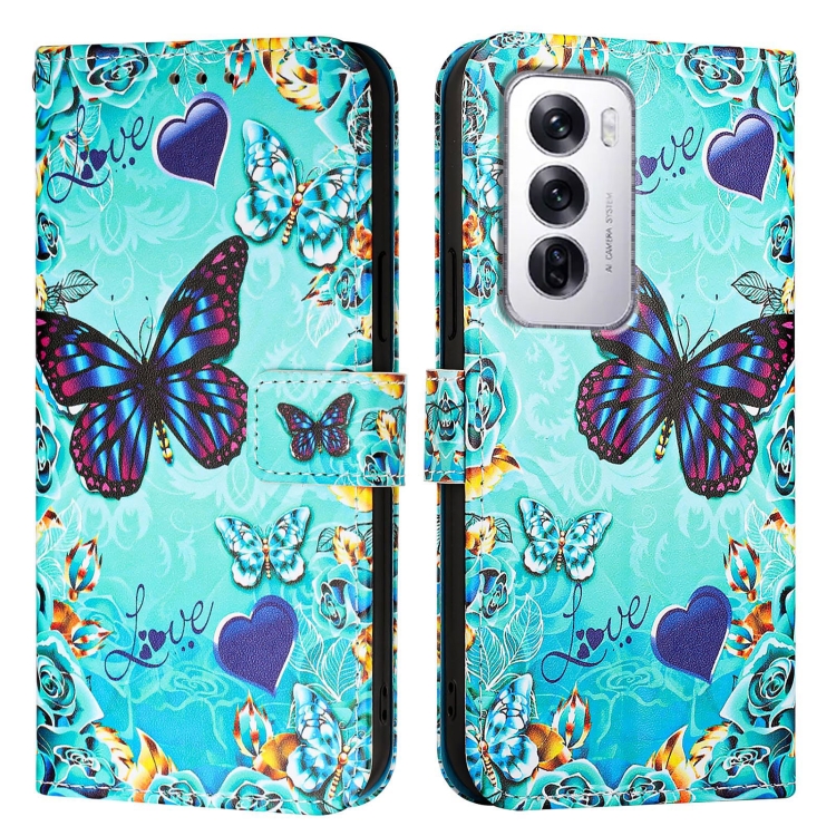 Funda de Cuero con Patrón de Dibujo de Colores para Oppo Reno12 Global (Mariposa Cariñosa)