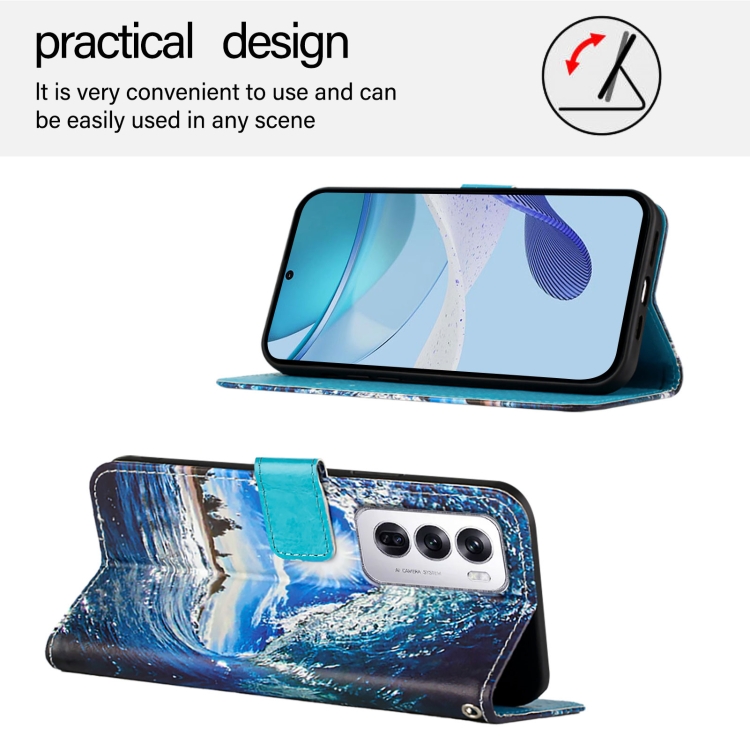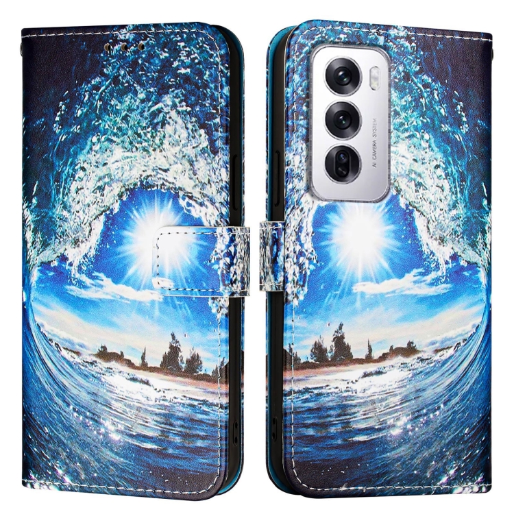 Funda de Cuero con Patrón de Dibujo de Colores para Oppo Reno12 Global (Ondas y Sol)