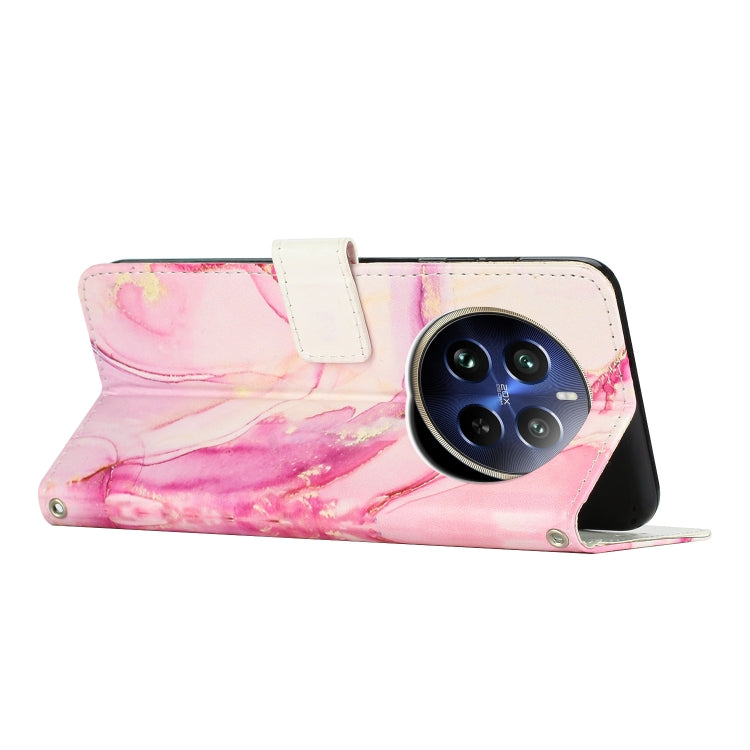 Funda de Cuero con Patrón de Mármol Pintado Global para Realme 12 4G / 12+ 5G (Oro Rosa)