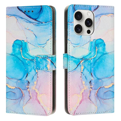 Funda de Cuero iPhone 16 Pro Patrón Mármol Pintado (Rosa y Verde)