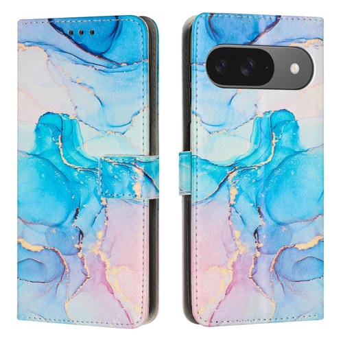 Funda de Cuero con Patrón Mármol para Google Pixel 9 (Rosa y Verde)