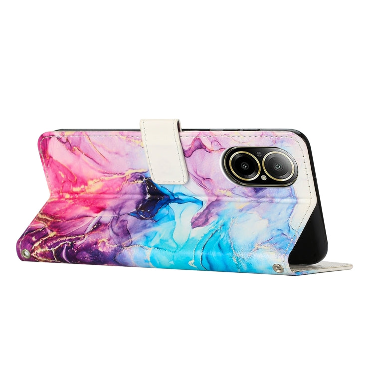 Funda de Cuero con Patrón de Mármol Pintado para Teléfono Realme C67 (Rosa y Morado)