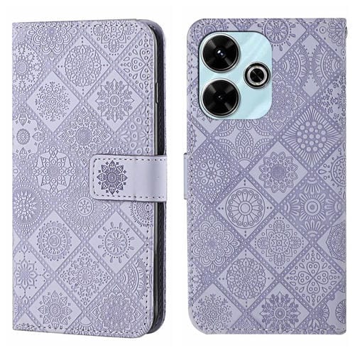 Funda de Cuero con Patrón En Relieve de Estilo Étnico para Redmi 13 4G (Morado)