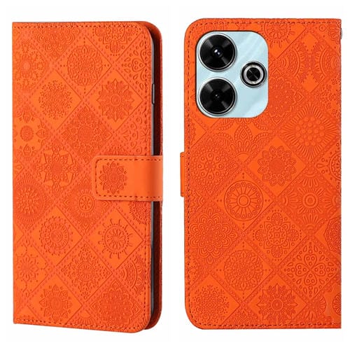 Funda de Cuero con Patrón En Relieve de Estilo Étnico para Redmi 13 4G (Naranja)