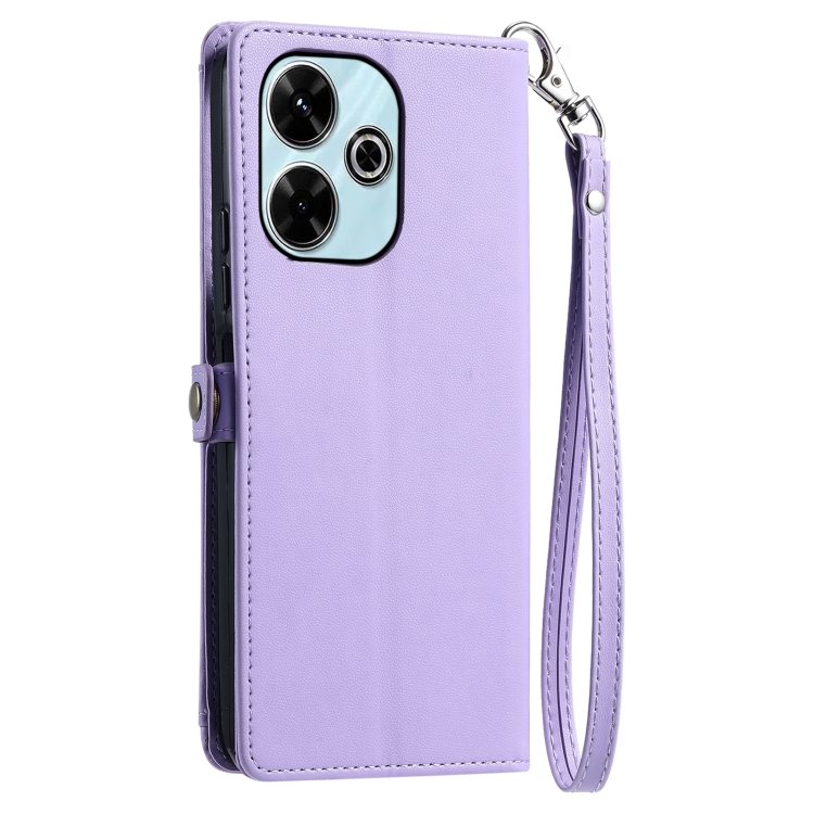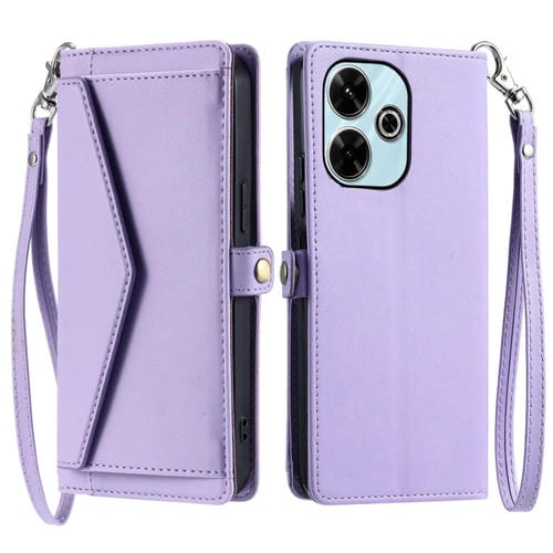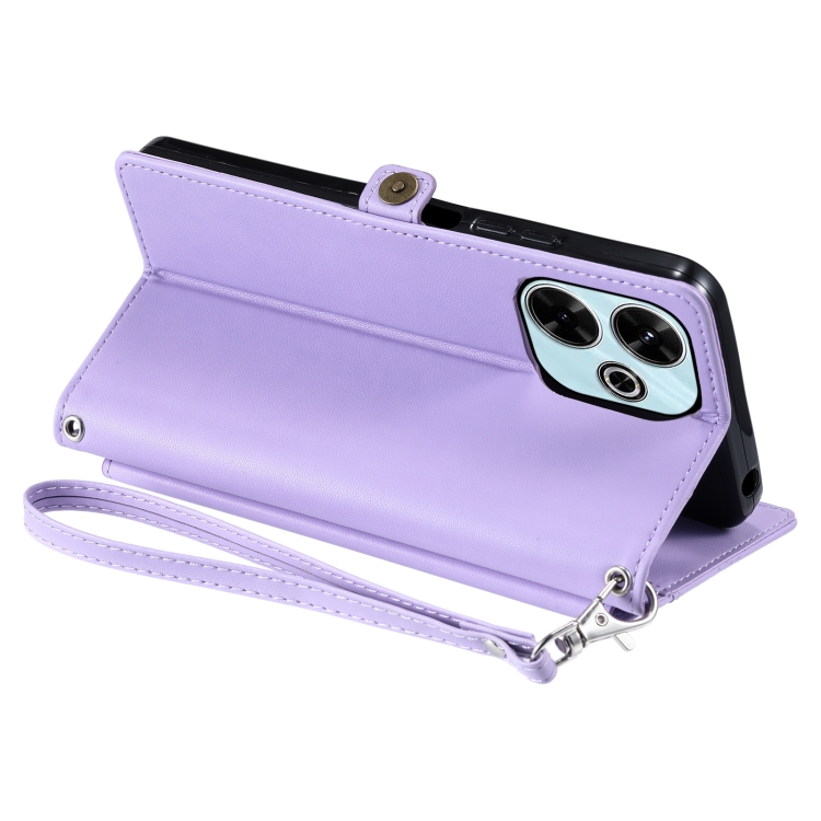Funda de Cuero con Ranura para Múltiples Tarjetas y Cordón para Redmi 13 4G (Morado)