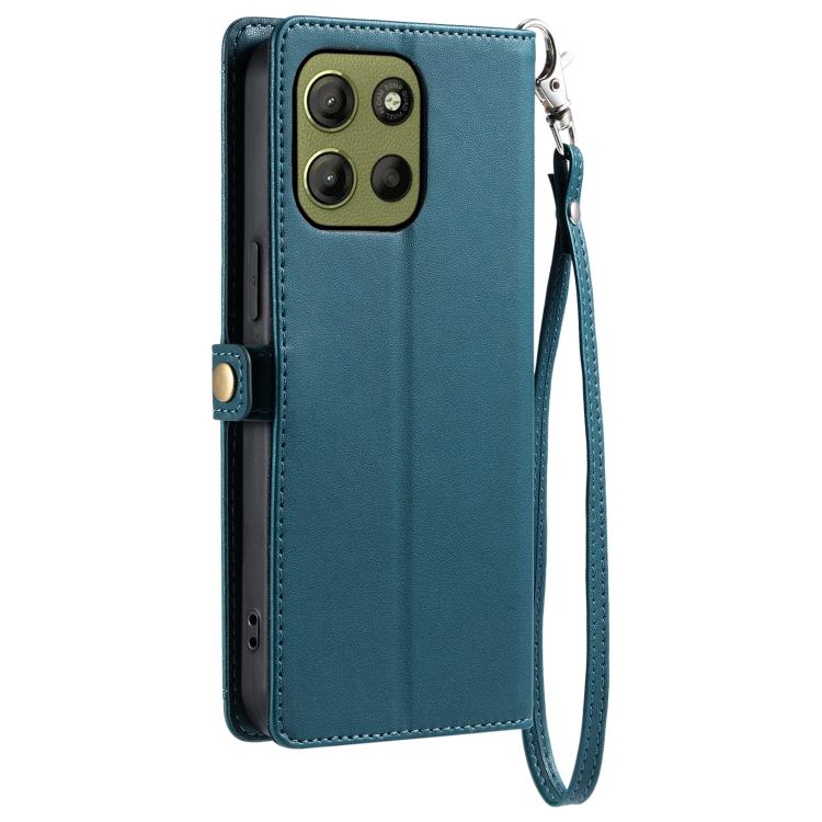 Funda de Cuero para Motorola Moto G15 con Ranura para Tarjetas y Cordón (Verde)