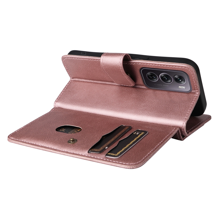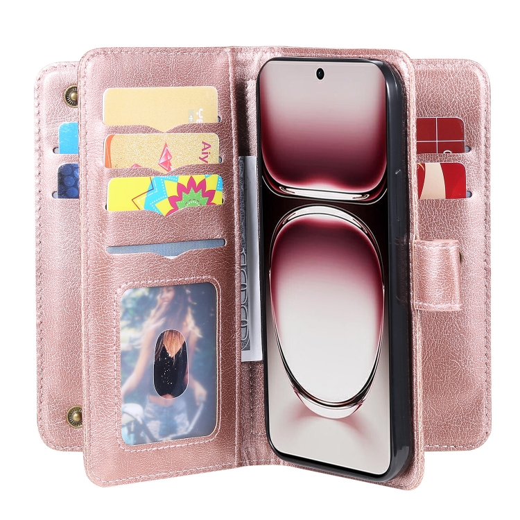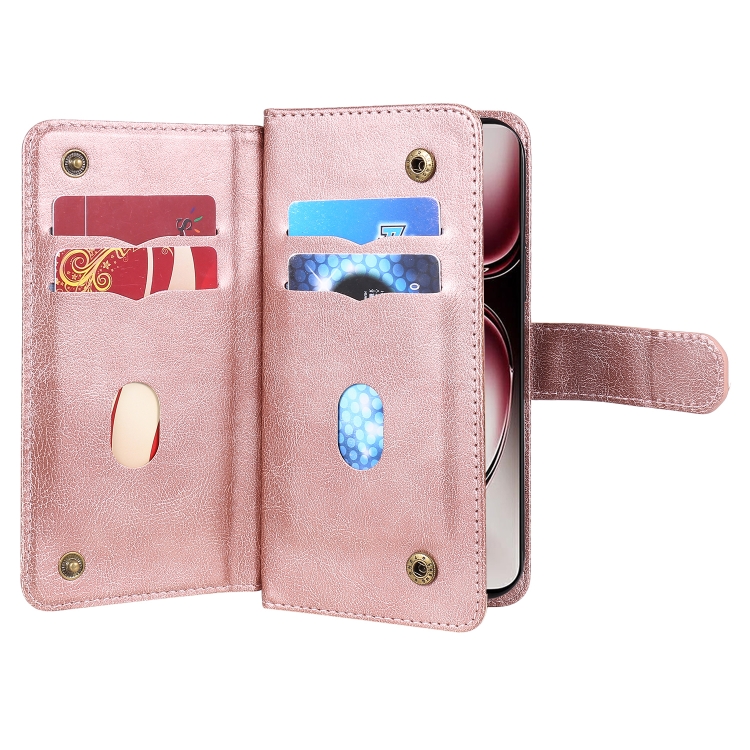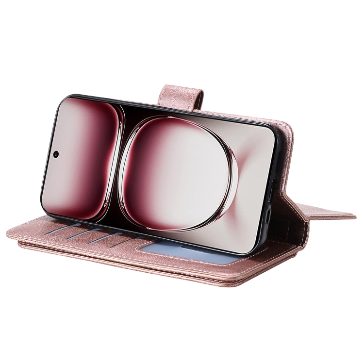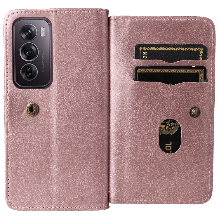 Funda de Cuero con Ranuras para Tarjetas y Billetera Multifunción Global para Oppo Reno12 Pro (Oro Rosa)