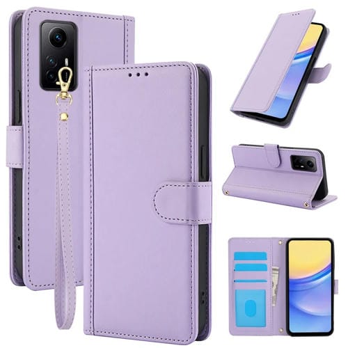 Funda de Cuero con Ranuras para Tarjetas y Tacto de Piel Global para Redmi Note 11 4G/Note 12S 4G con Cordón Doble (Morado)