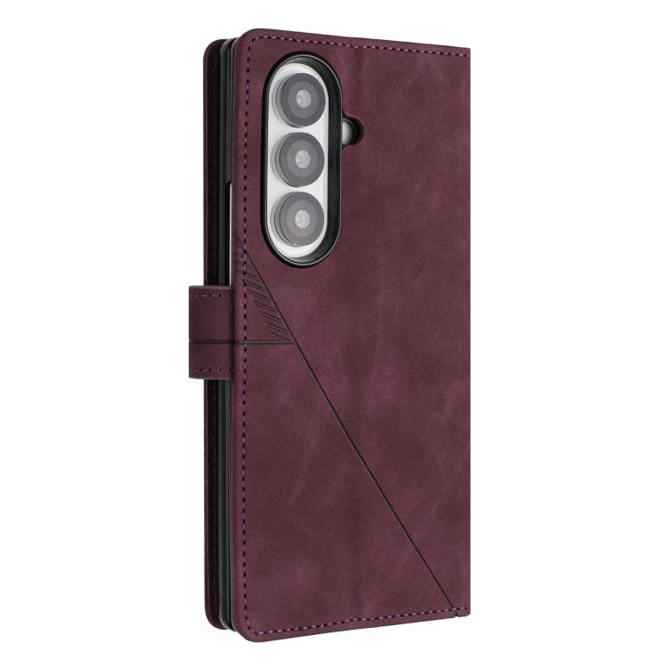 Funda de cuero con relieve 3D para Samsung Galaxy Z Fold7 5G (rojo vino)