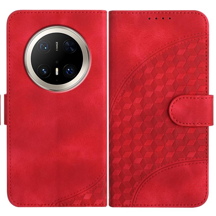 Funda de Cuero con Relieve Cabeza de Elefante para Huawei Mate 70 Pro y Mate 70 Pro+ con Cordón (Rojo)