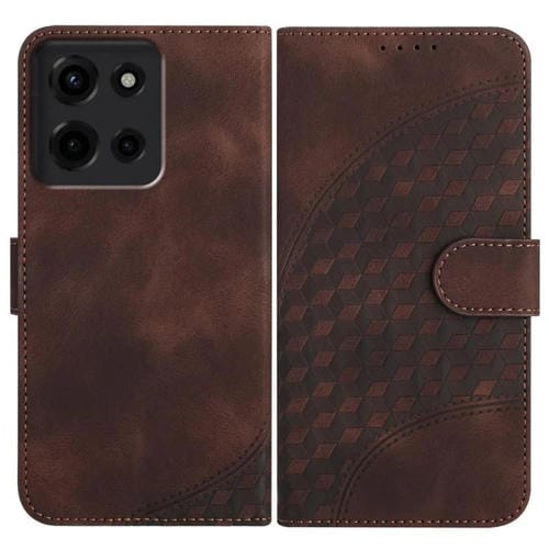 Funda de Cuero con Relieve Cabeza de Elefante para Motorola Moto G 2025 con Cordón (Café)
