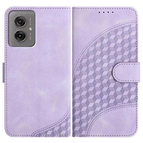 Funda de Cuero con Relieve de Cabeza de Elefante para Motorola Moto G55 Yx0060 con Cordón (Morado Claro)