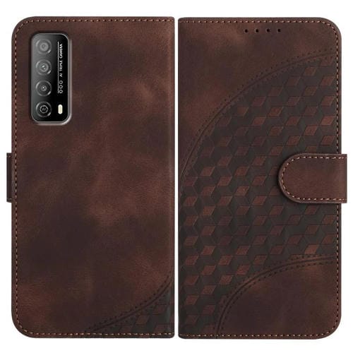 Funda de Cuero con Relieve Cabeza de Elefante para Huawei Enjoy 20 Se 4G con Cordón (Café)