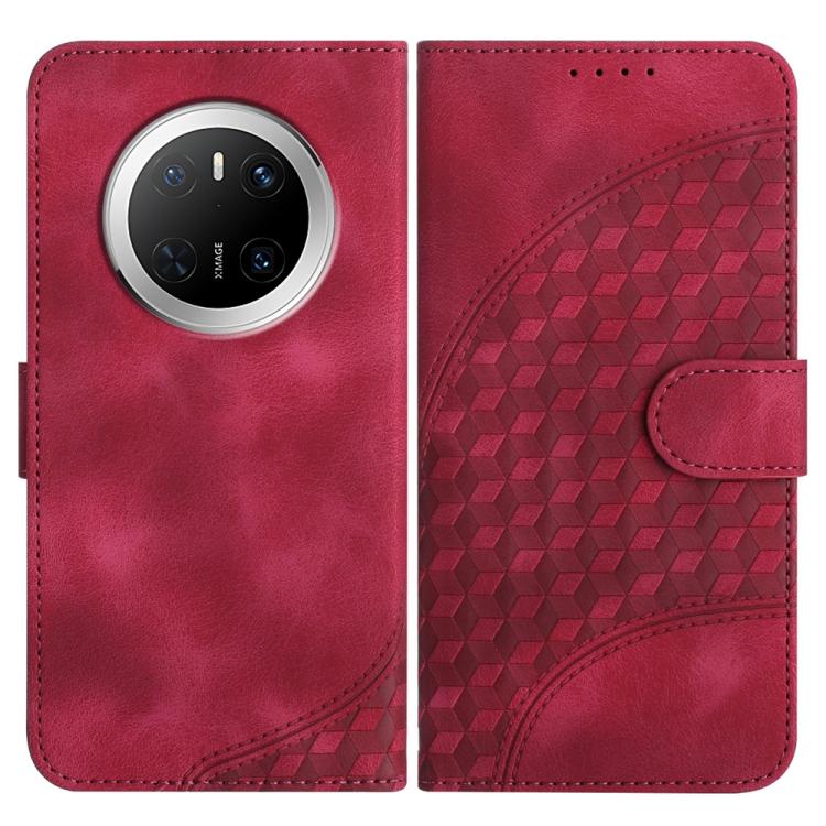 Funda de Cuero con Relieve de Cabeza de Elefante para Huawei Mate 70 con Cordón (Rosa Rojo)