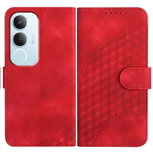 Funda de Cuero con Relieve de Cabeza de Elefante para Teléfono Vivo Y19S Global con Cordón (Rojo)