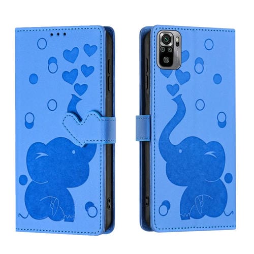 Funda de Cuero con Relieve de Elefante de Dibujos Animados para Redmi Note 10/Note 10S (Azul)