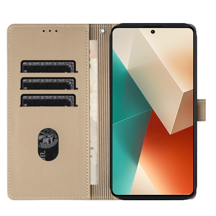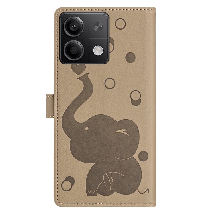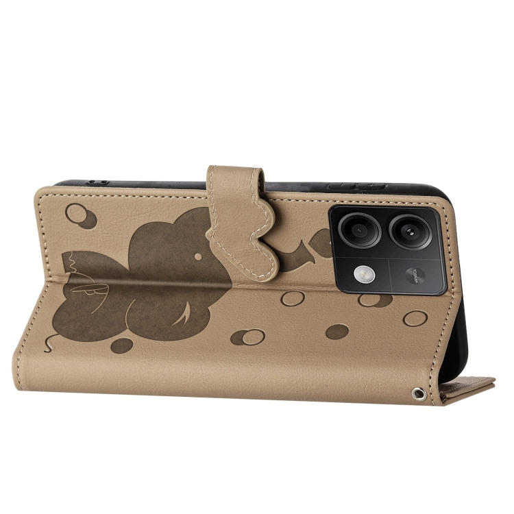 Funda de Cuero con Relieve de Elefante de Dibujos Animados para Redmi Note 13 Pro 5G (Caqui)