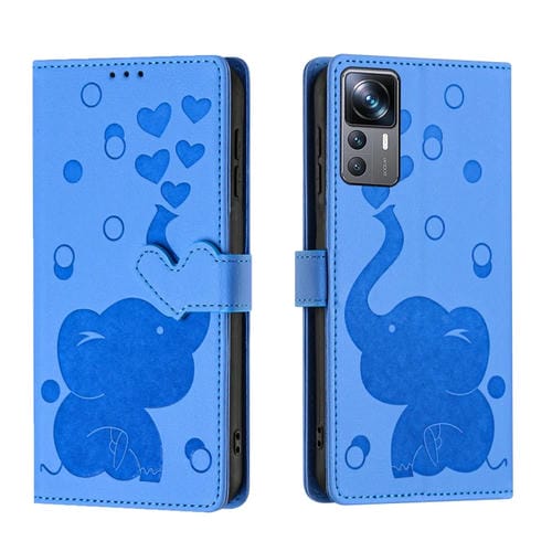 Funda de Cuero con Relieve de Elefante de Dibujos Animados para Xiaomi 12T/12T Pro (Azul)