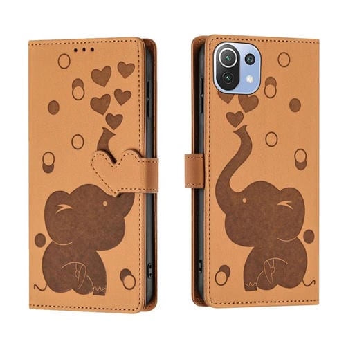 Funda de Cuero con Relieve de Elefante de Dibujos Animados para Xiaomi Mi 11 Lite (Amarillo)