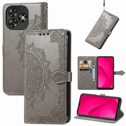 Funda de Cuero con Relieve Flor de Mandala para Teléfono Oukitel C53 (Gris)
