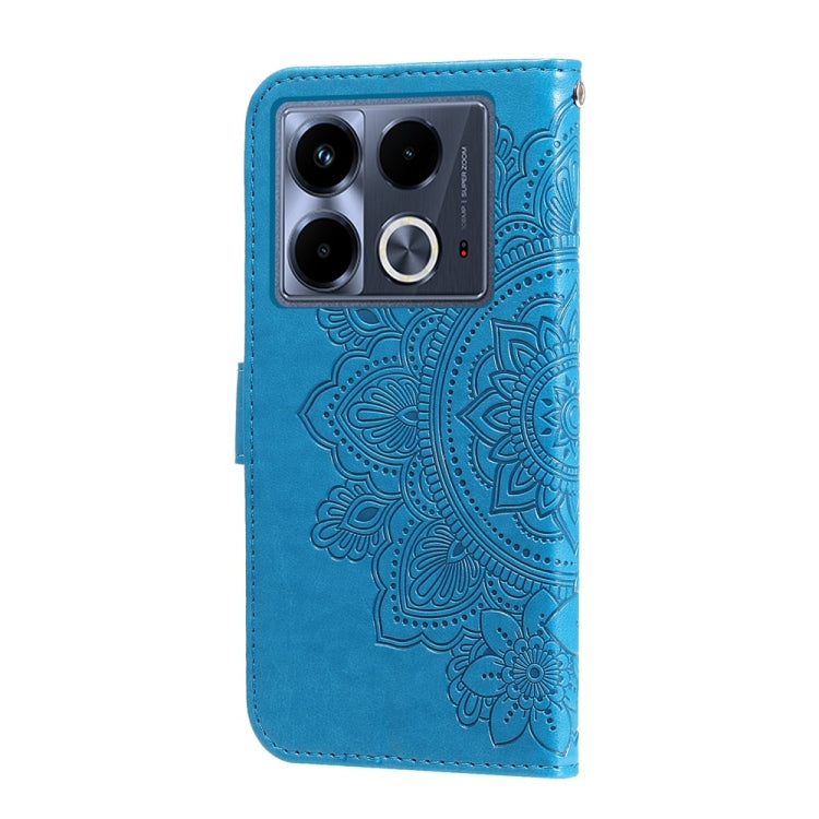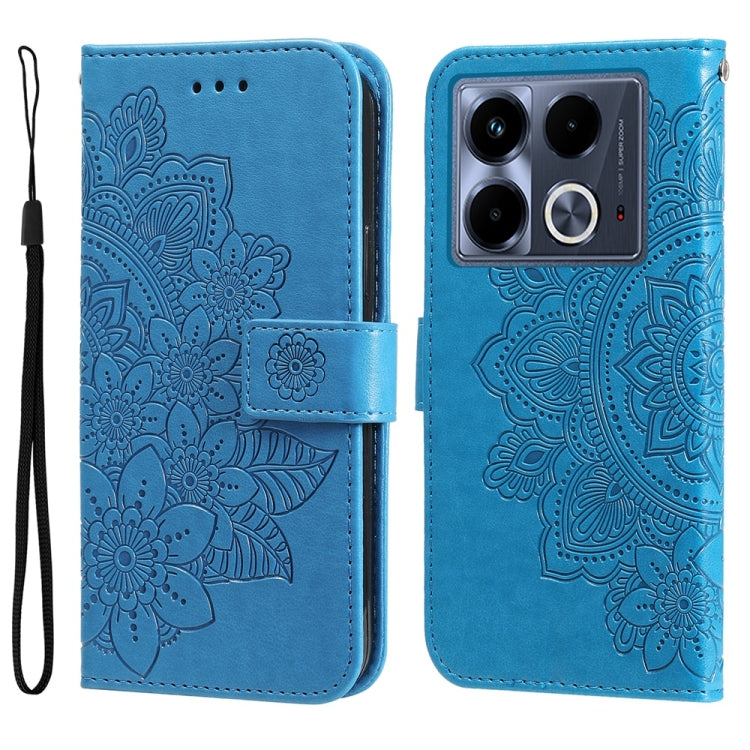 Funda de Cuero con Relieve de Flores de Siete Pétalos para Infinix Note 40 4G (Azul)